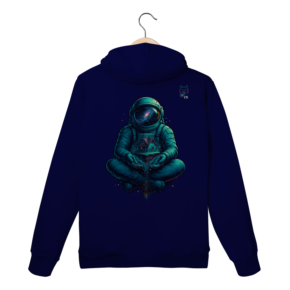 Moletom Prime Canguru Astronauta Cósmico traz uma arte exclusiva que mistura o mistério do espaço com o conforto do dia a dia.